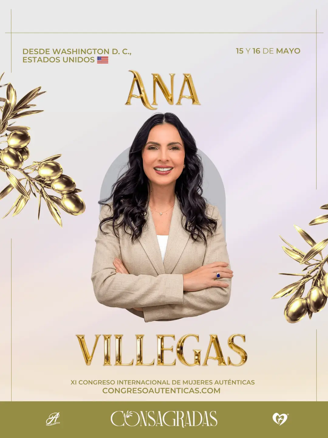 Ana Villegas, conferencista internacional que llega desde Washington D. C., Estados Unidos, es una líder apasionada por activar el propósito divino en la vida de las mujeres. Con una trayectoria marcada por la enseñanza clara y profunda, se ha convertido en un referente de empoderamiento espiritual en el mundo hispano. Su participación en el XI Congreso Internacional de Mujeres Auténticas busca inspirar a esta generación a vivir una vida de consagración y plenitud.