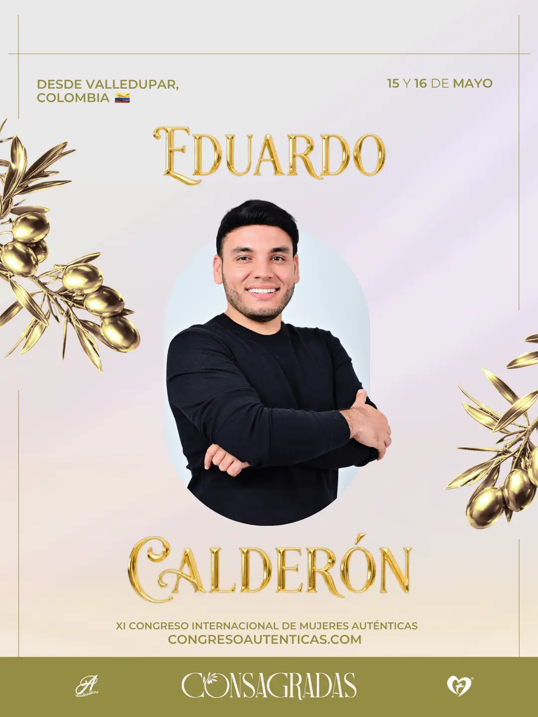 Eduardo Calderón, pastor principal de la Iglesia Cristo Vive en Mí en Valledupar, Colombia, es un líder apasionado por el servicio y el desarrollo del potencial espiritual en las personas. Reconocido por su carisma y profundidad bíblica, es un hombre apasionado por alcanzar familias para Dios. Su presencia en este XI Congreso Internacional de Mujeres Auténticas aporta una visión de unidad y respaldo para quienes buscan caminar con pasos firmes en el propósito de Dios.